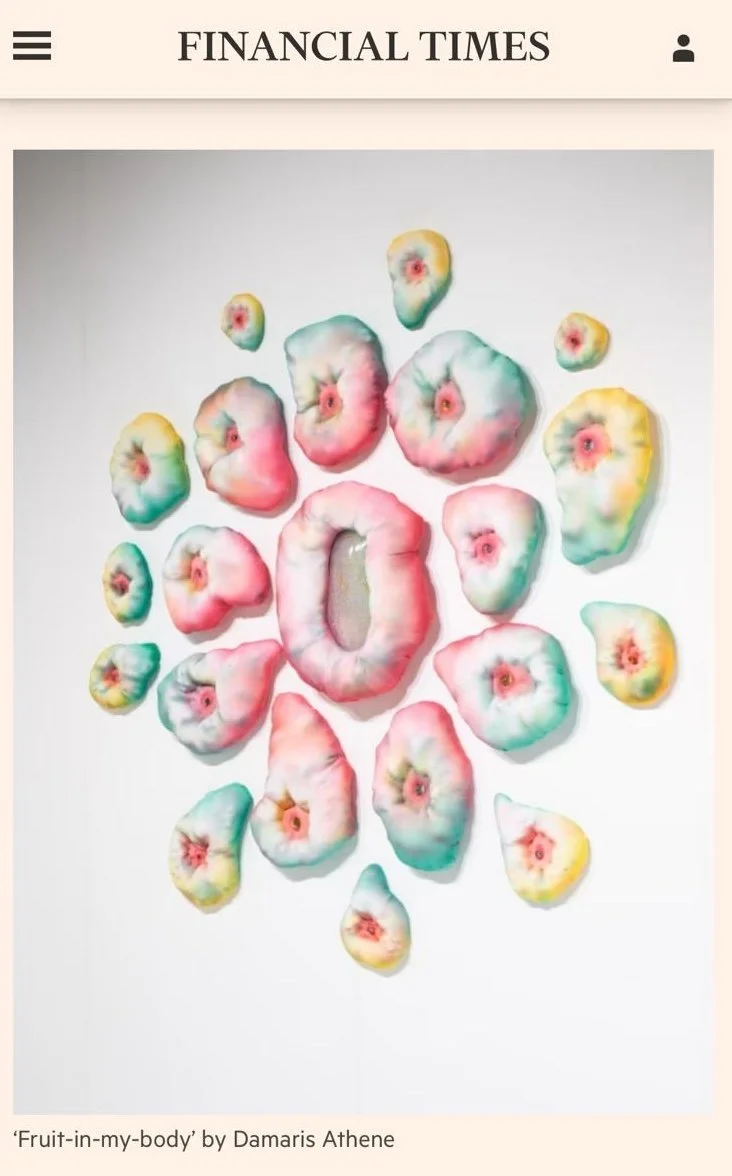 Thank you to Melanie Gerlis for featuring my piece ‘fruit-in-my-body’ in the Financial Times Weekend on 24th October 2024 in her art market column. This installation was exhibited at the Women In Art Fair with SLQS Gallery in October 2024. SLQS Gallery is founded by Sarah Le Quang Sang and the gallery will open a permanent space in 2025.